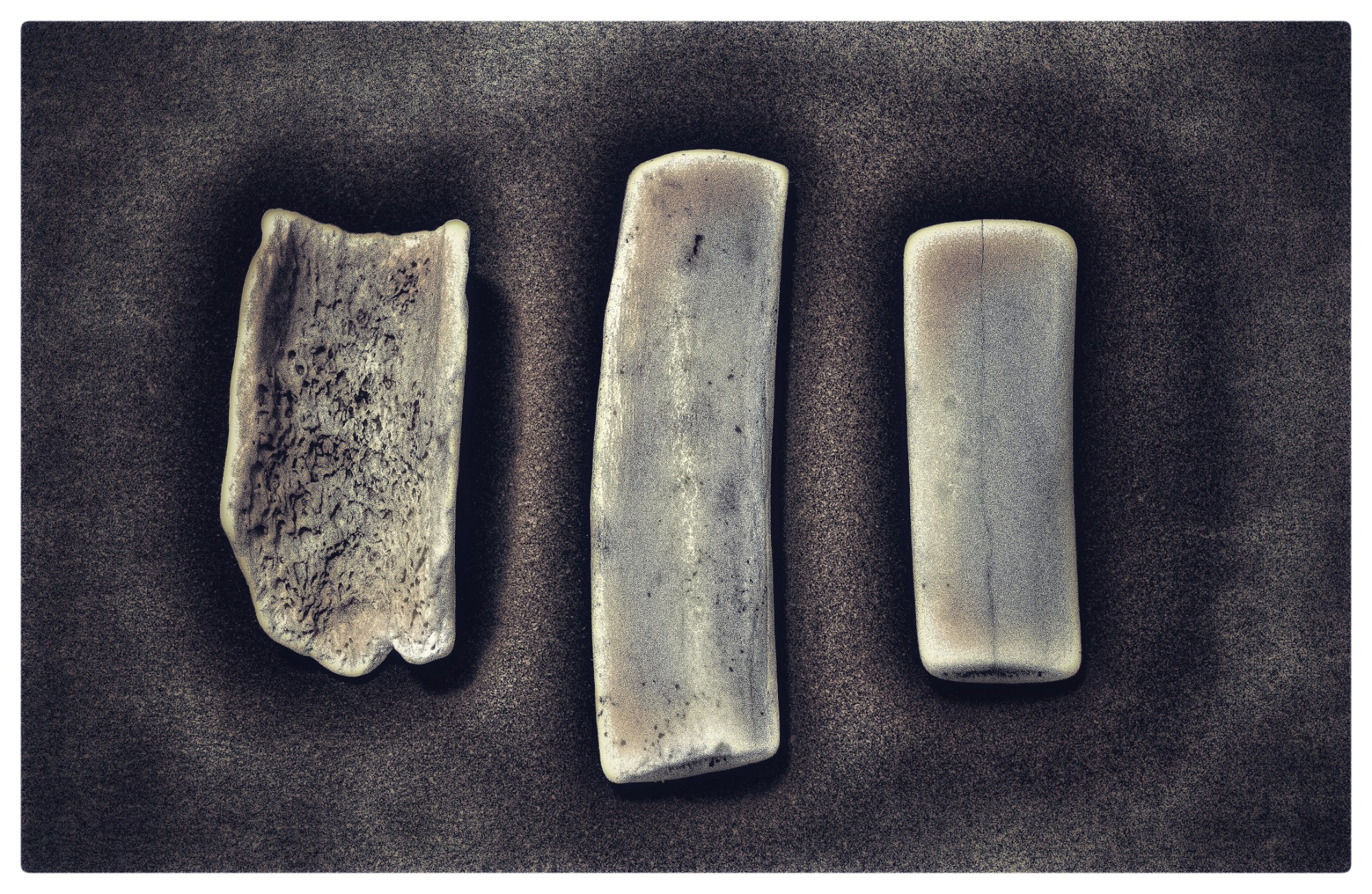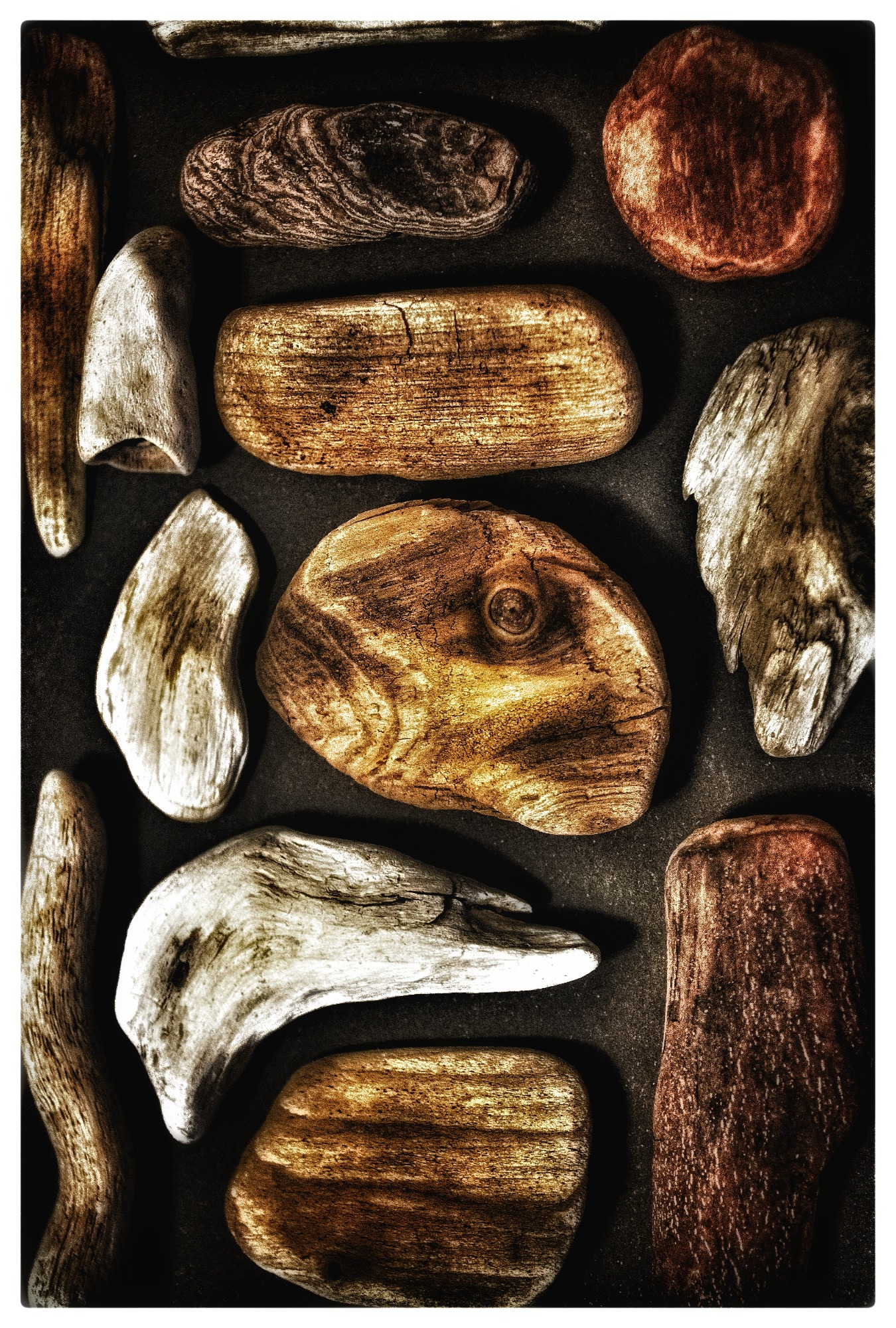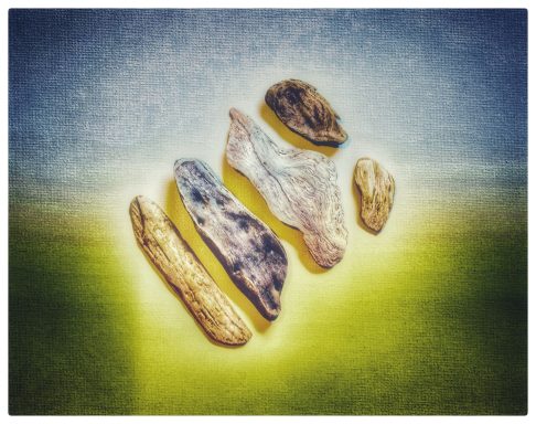 Objects found that have been shaped by nature and photographed in an Objet Trouve style.